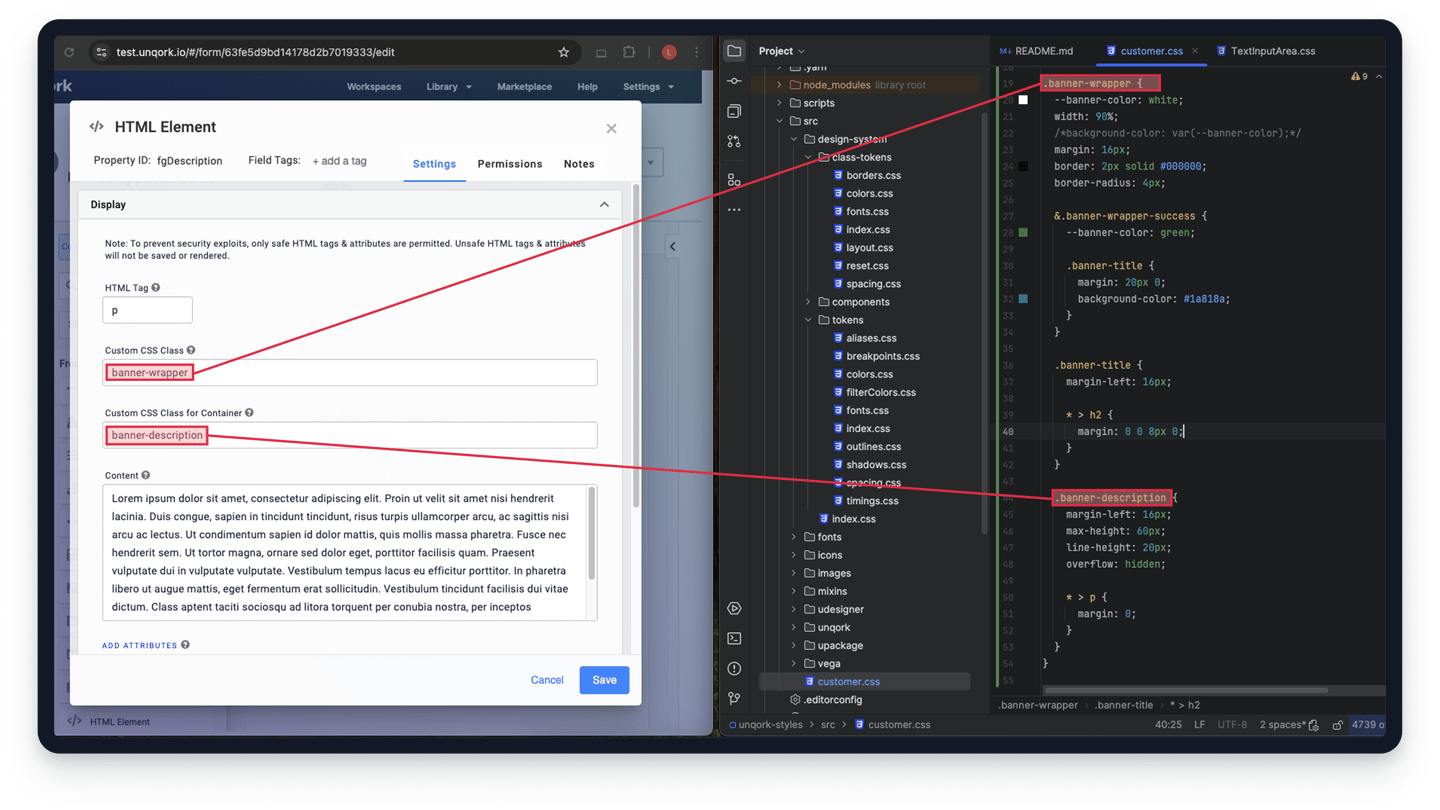 Styling in Unqork was manual and code-dependent. Users had to write CSS and manage styles through external files. This not only excluded non-technical users but also introduced inconsistencies and inefficiencies across applications. Clients couldn't to integrate their own design systems, and we had no scalable way to support tokens, or reusable styles.